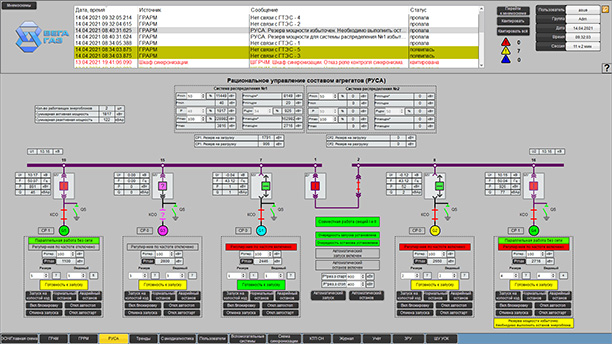 Система определяет оптимальное количество одновременно функционирующих агрегатов с учетом индивидуальных характеристик ГТЭС как для одной станции, так и для группы ГТЭС, обеспечивает оптимальное решение по составу, режимам работы и нагрузкам ГТЭС с учетом «живого» распределения текущей мощности между ними и ограничения по техническим характеристикам каждой ГТЭС и ЭСН в целом. Также РУСА обеспечивает максимальный КПД станции.