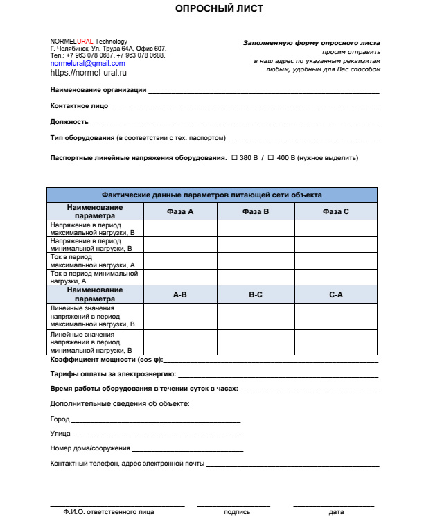 Если нет возможности провести энергоаудит выездным специалистом, то предлагается потребителю заполнить «Опросный лист». И уже на основании этих данных делается отчёт.