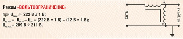 в) режим «вольтоограничение», обусловленный уровнем Uвх = 222 В и выше, вплоть до 260 В, что является верхней границей рабочего диапазона. При этом Uвх = Uвых – 12 В.