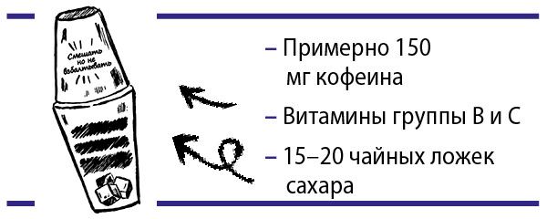 Сейчас мы уже знаем, что кофеин, основной компонент энергетиков, стимулирует работу мозга и увеличивает выносливость сердца. При этом есть ограничения по его потреблению. Сами производители предупреждают на баночке с напитком, что рекомендуется не больше двух напитков (всего 1 л) в сутки. Причина — содержание кофеина в одной банке напитка 0,5 л составляет около 150 мг, а это половина суточной допустимой дозы кофеина для взрослого человека. Довольно простая математика.