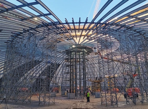 Подвесное перекрытие. Расположено над внутренним контейнером и поддерживается радиальными балками крыши. Оно поддерживает термоизоляцию и изготавливается из сваренных алюминиевых пластин.