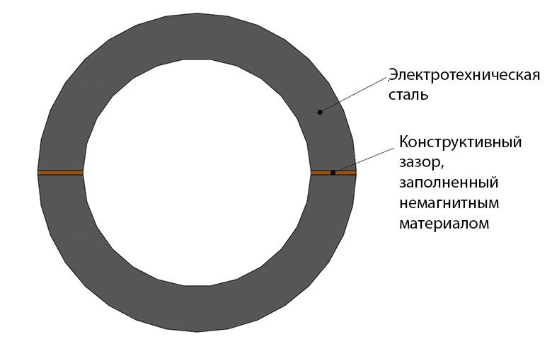 Самый действенный способ по снижению погрешностей в трансформаторах тока, предназначенных для работы в переходных режимах, — это устранение или снижение остаточной индукции в магнитопроводе. На практике данный метод реализуется при помощи специального технологического зазора в магнитопроводе, который заполняется немагнитным материалом. Размер воздушного зазора выбирается проектировщиком исходя из сочетания массы факторов: заданного класса точности трансформатора, а также исходя из требований по предельной кратности и вторичной нагрузке.