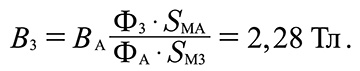 С = 2 Тл. Определим индукцию в верхних ярмах, с учетом отношения их площадей к площади стержней.