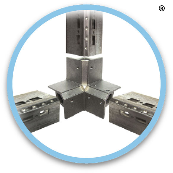 • запатентованная конструкция угловых соединительных элементов гарантирует жесткость каркаса, достижимую, как правило, только в сварных шкафах;