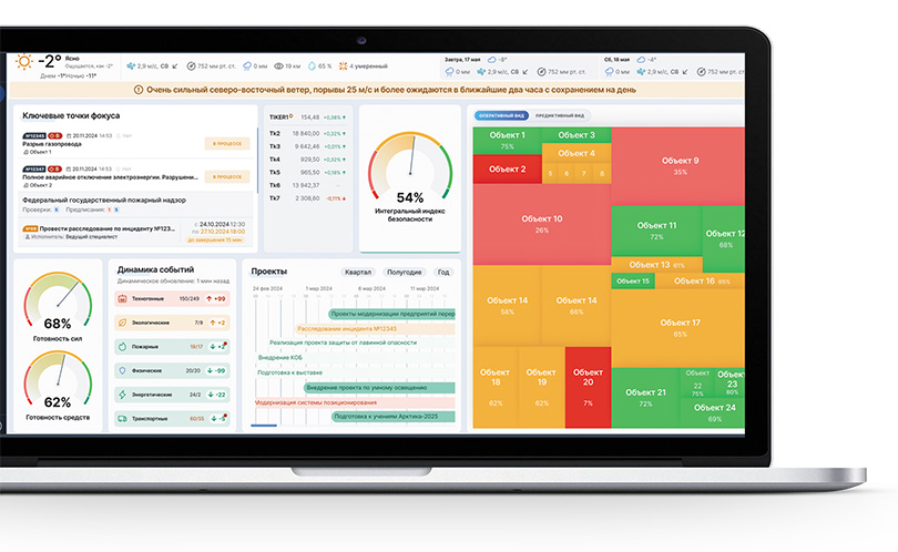 Вся экосистема решений НКК в сфере комплексной безопасности основана на базе проверенной методологии и работает на основе уникального ИТ-решения, которое помогает отслеживать состояние параметров безопасности в реальном времени.